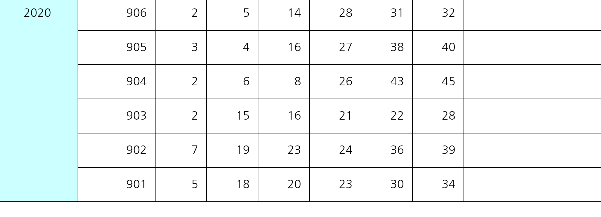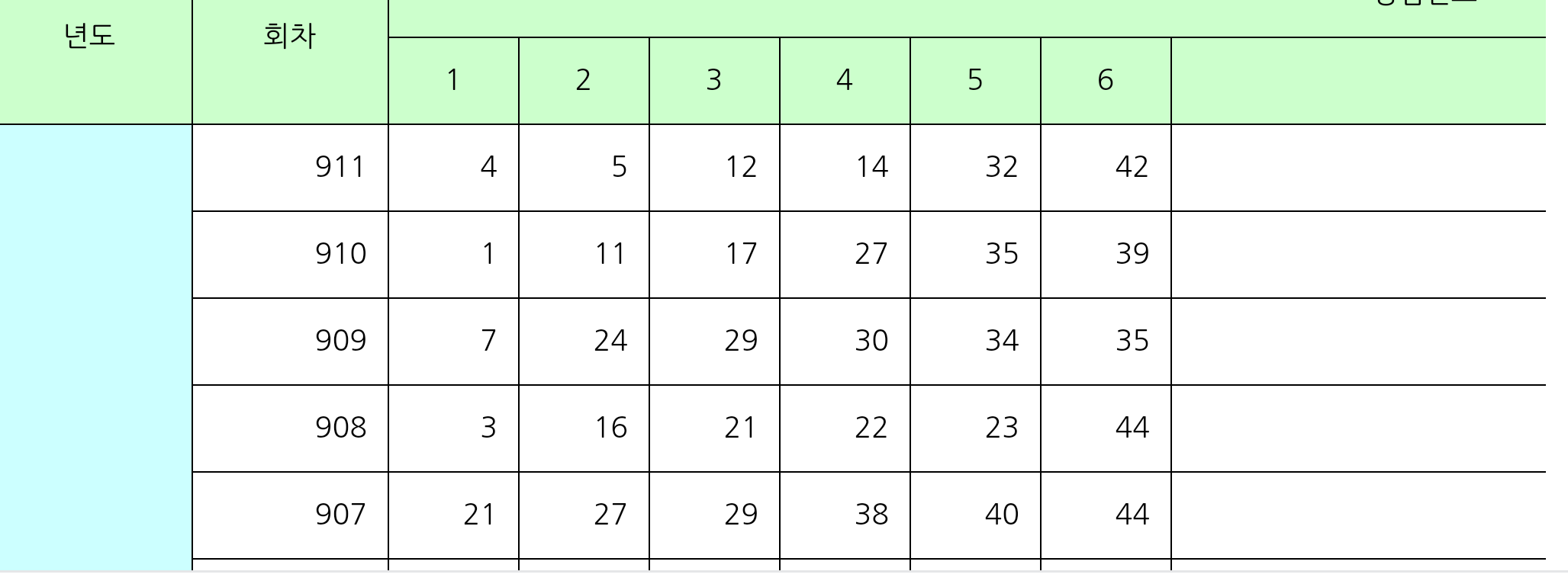 위 표는 901부터 911회차에 당첨 번호입니다.