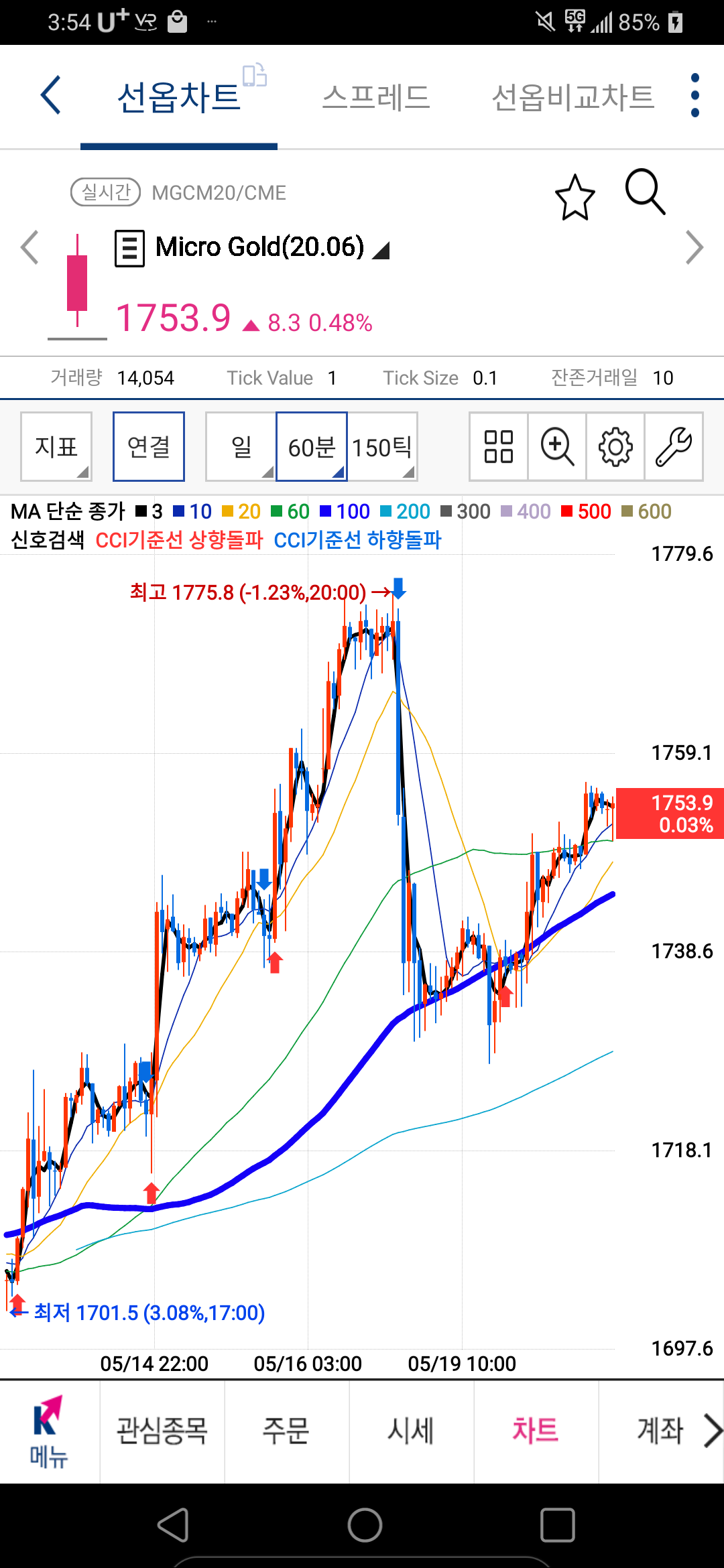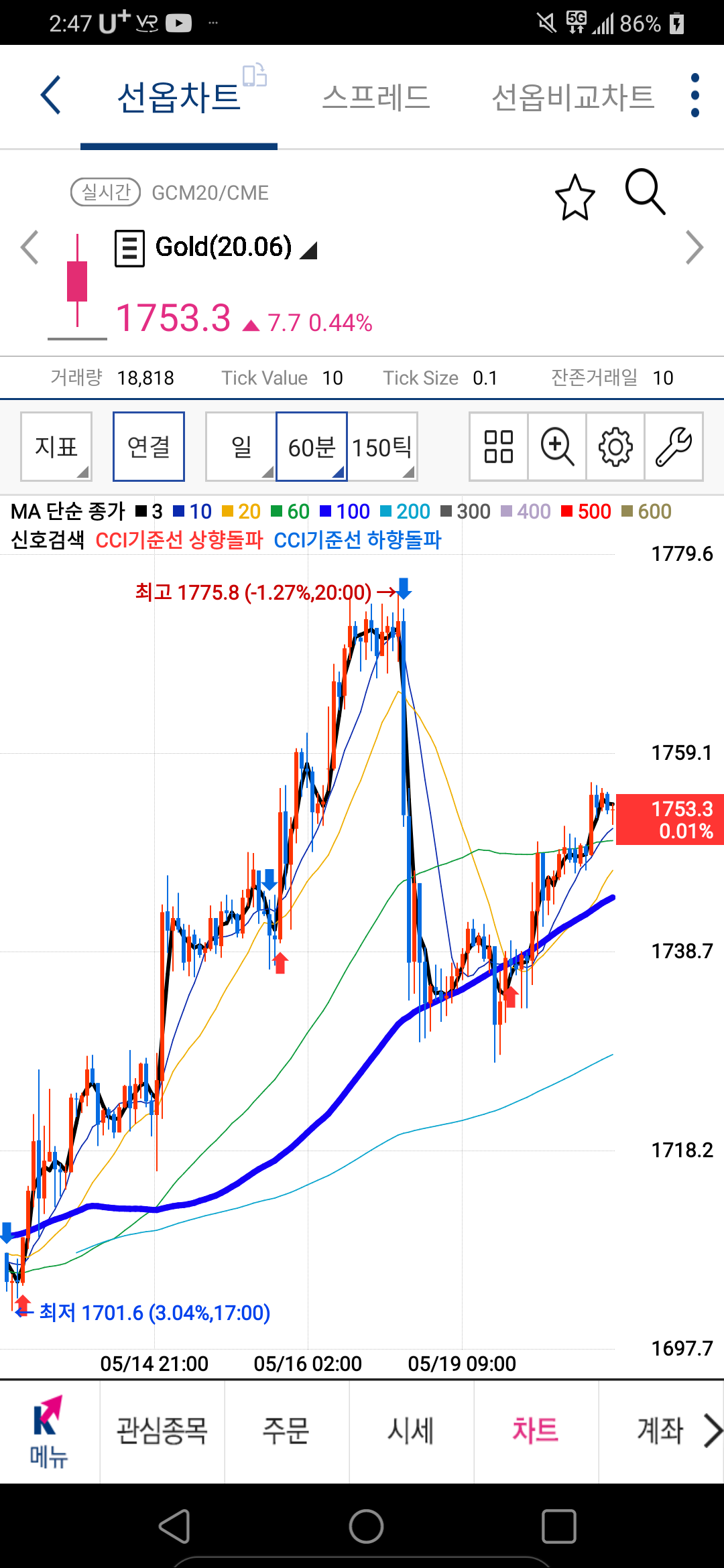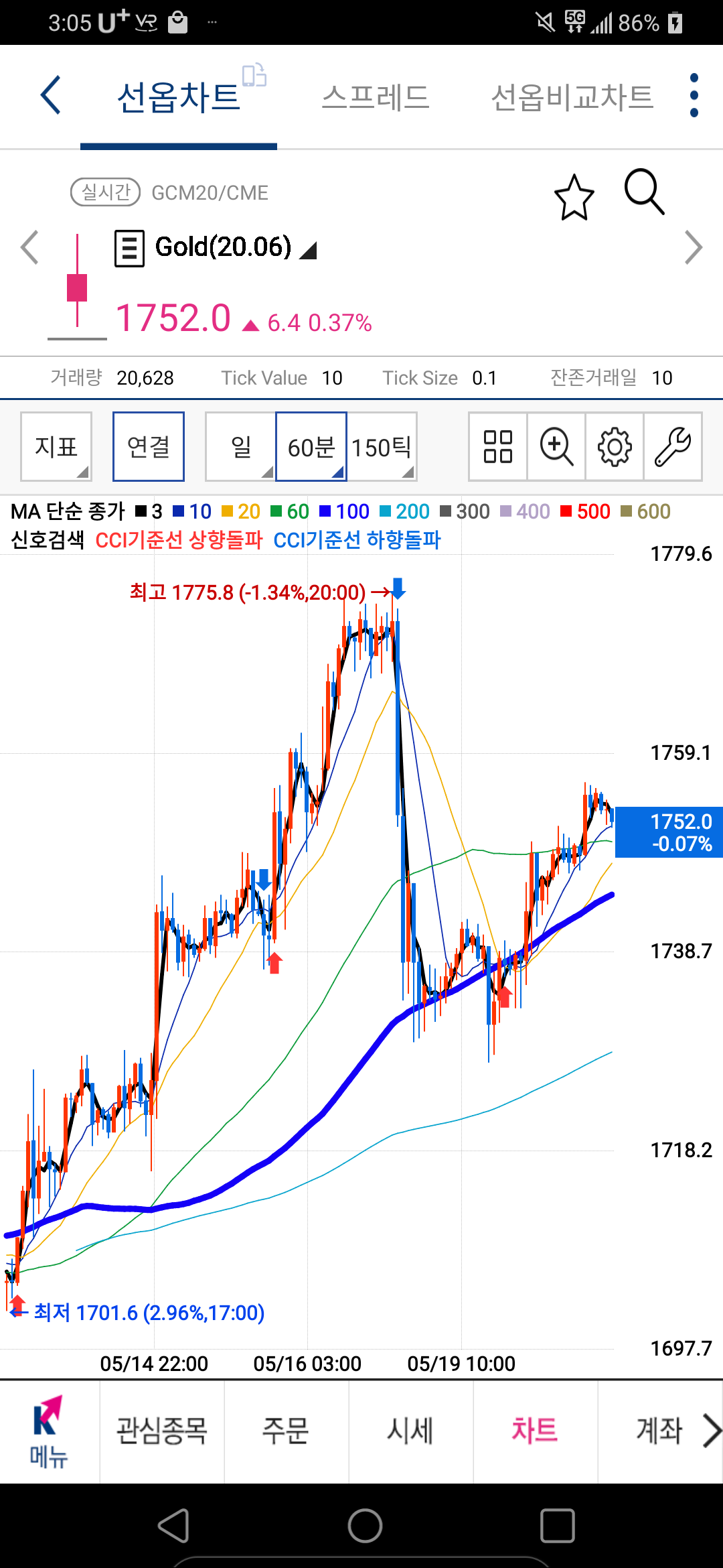 해외선물 골드 차트 보는 법