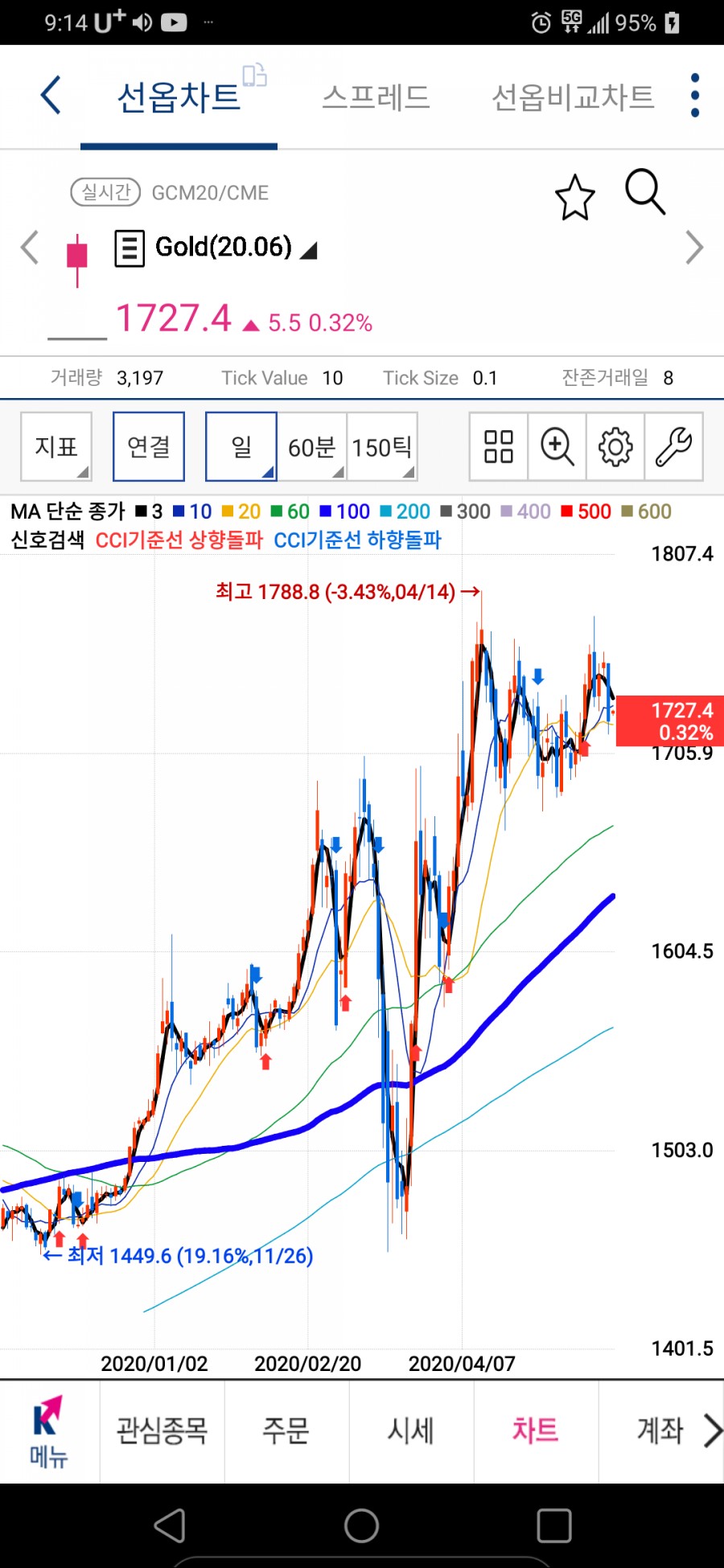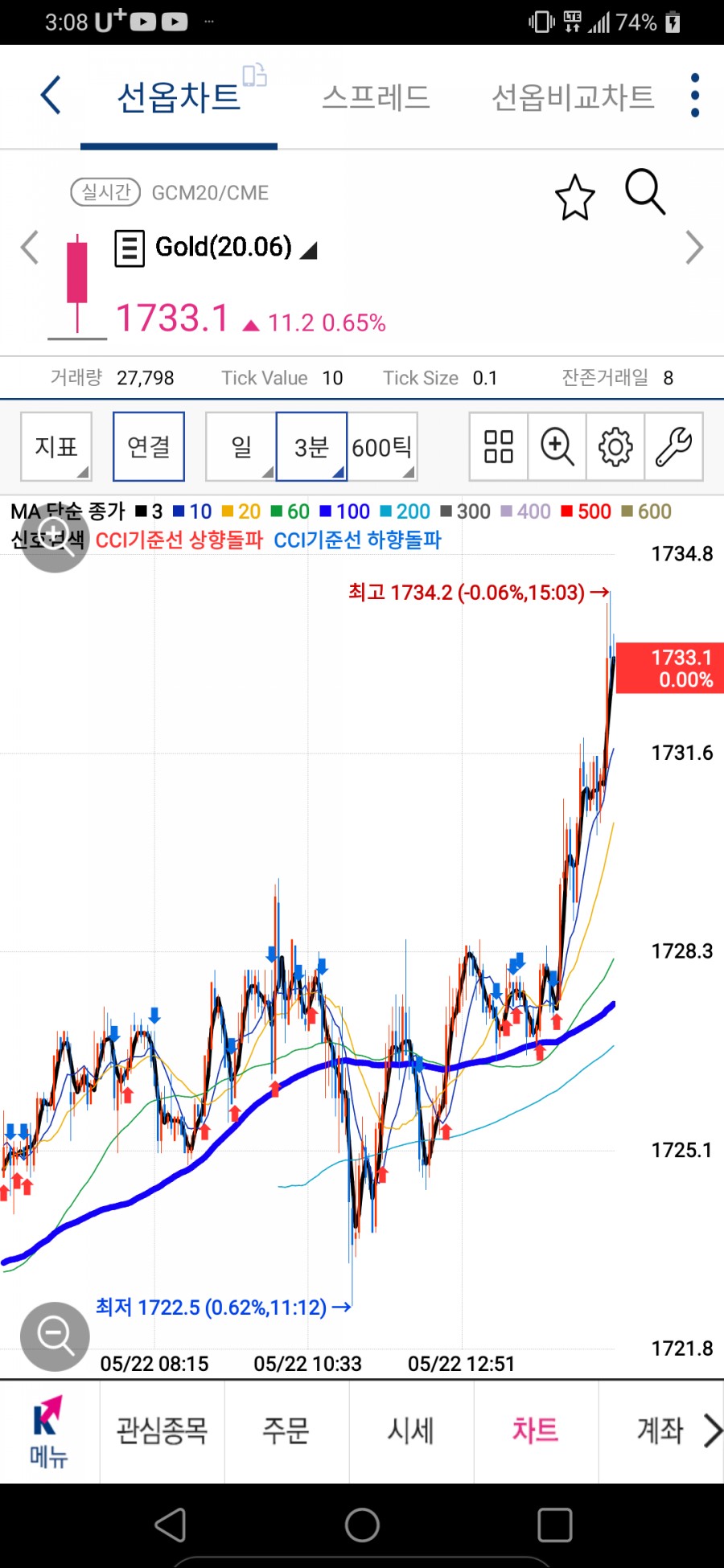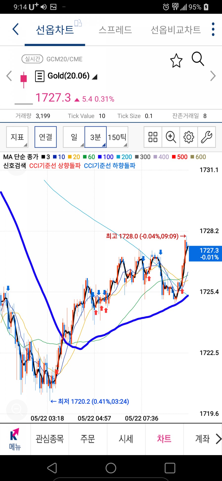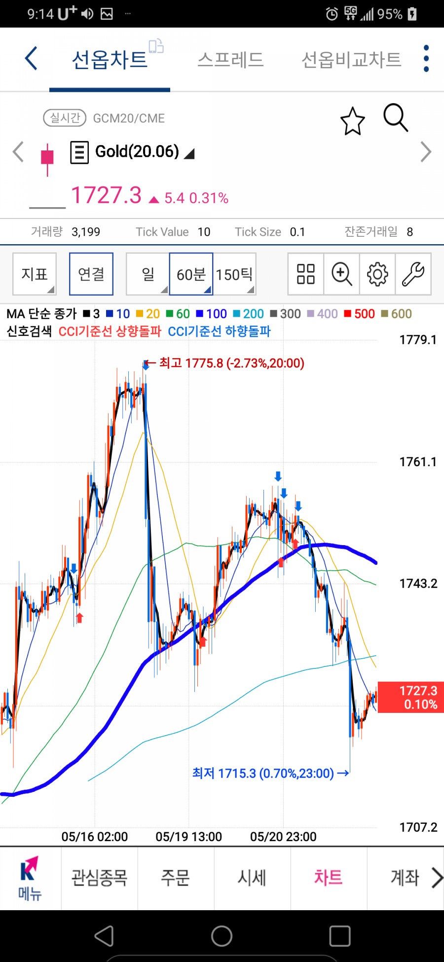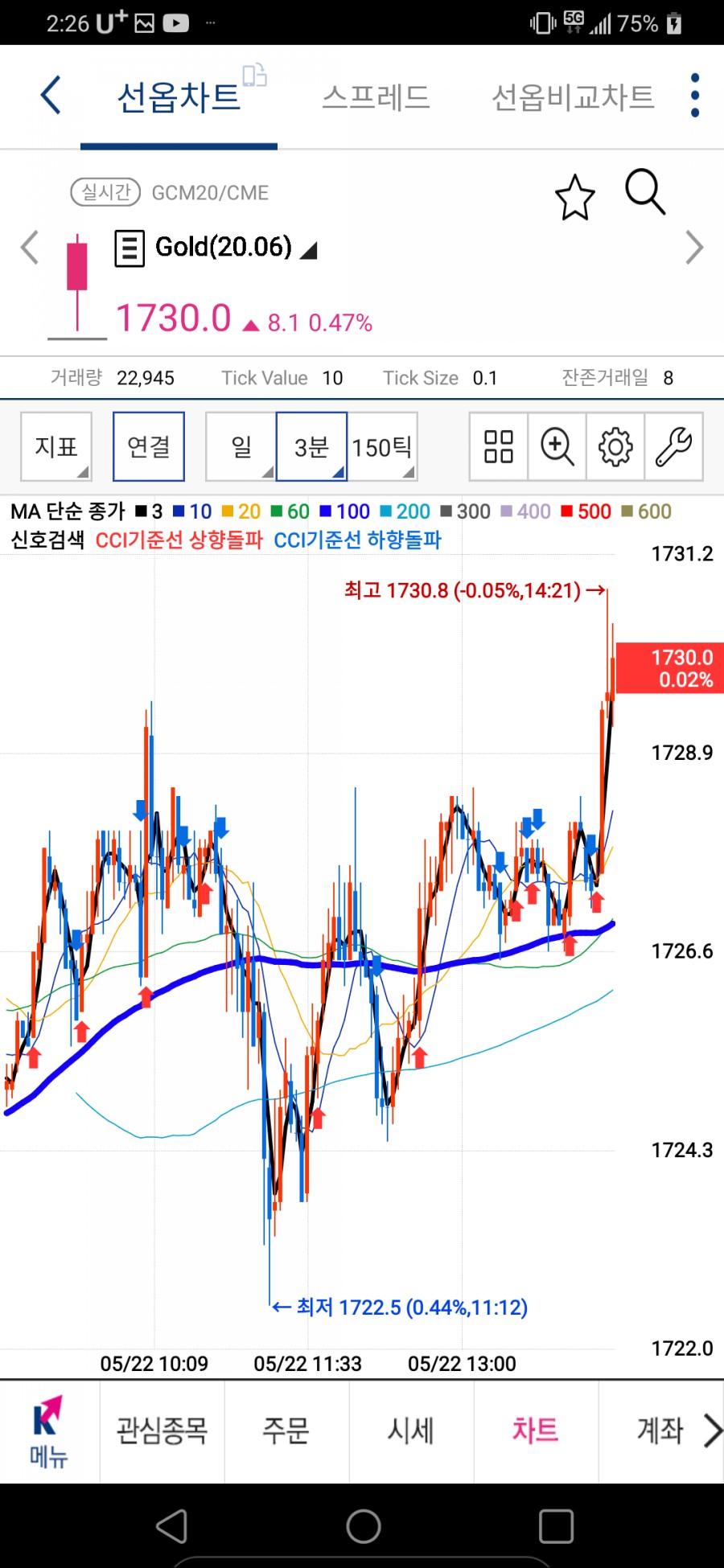 해외선물 골드 차트보는 법 2020년 5월 22일